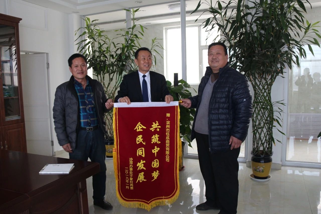 1月30日,于家村“兩委”將一面寫著“企民同發(fā)展 共筑中國夢”字樣的錦旗送到了濱州鈺城商貿有限公司,感謝企業(yè)一年來對于家村發(fā)展所做的貢獻,這也是我辦“村企共建”的典型事例。通過村企共建,有效的推進了企業(yè)和農村和諧共處、相互促進、共同提高。